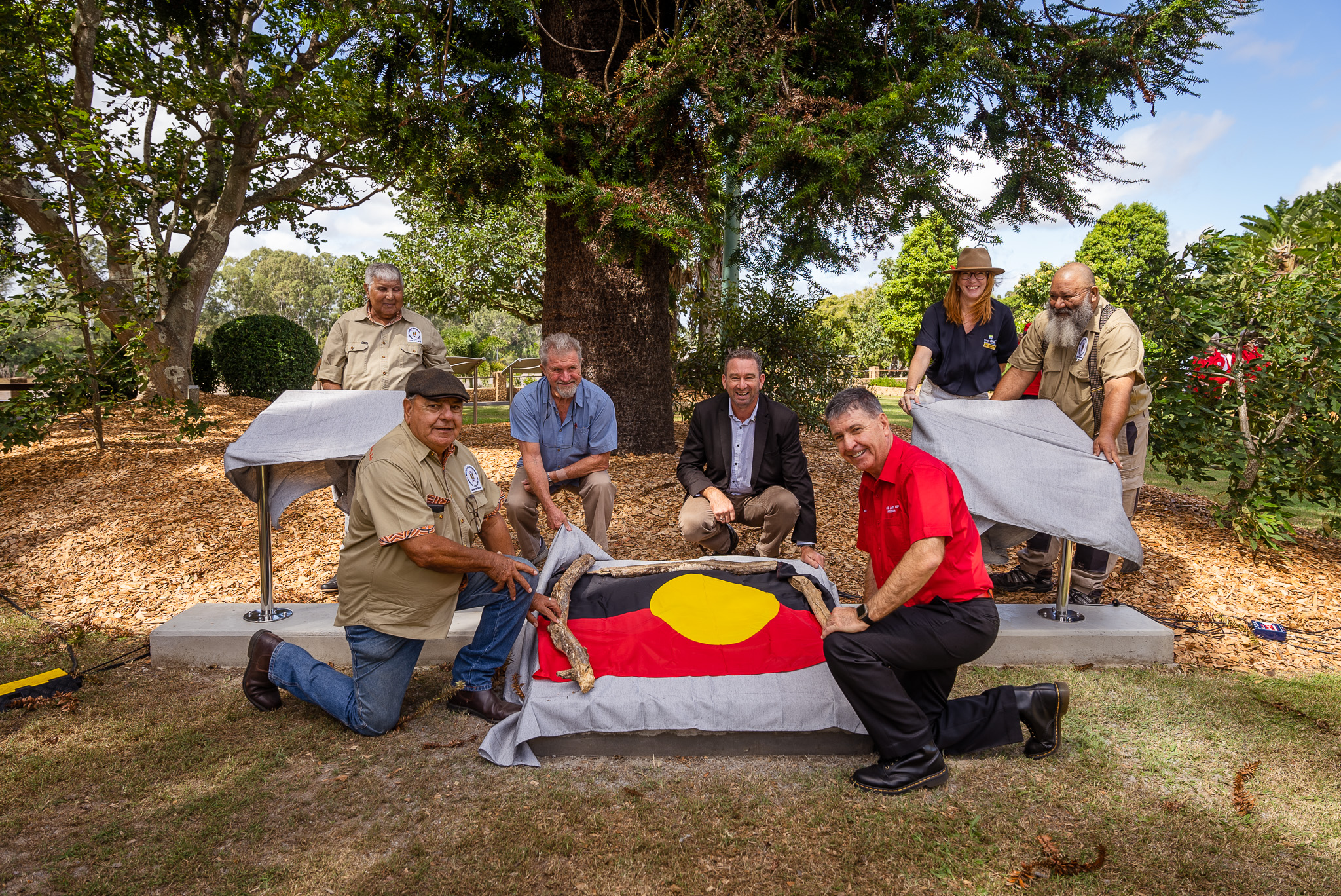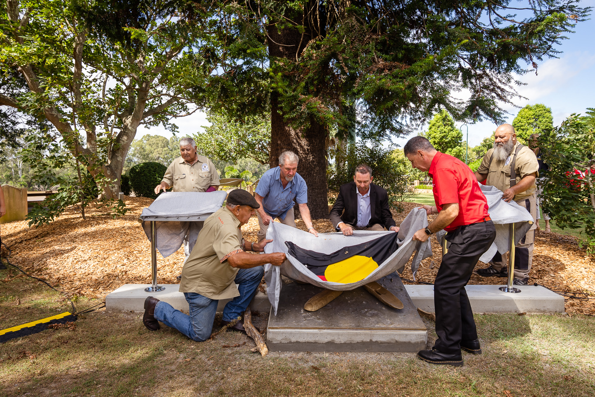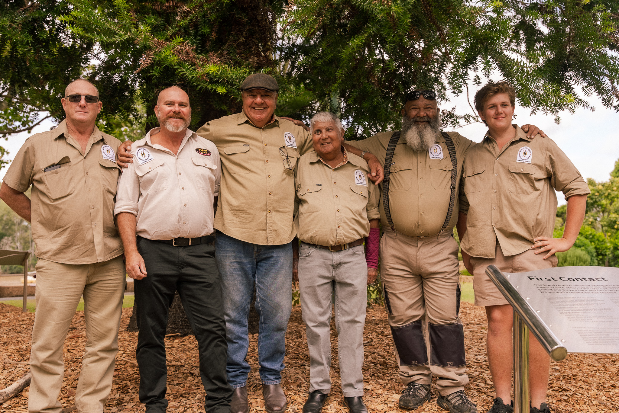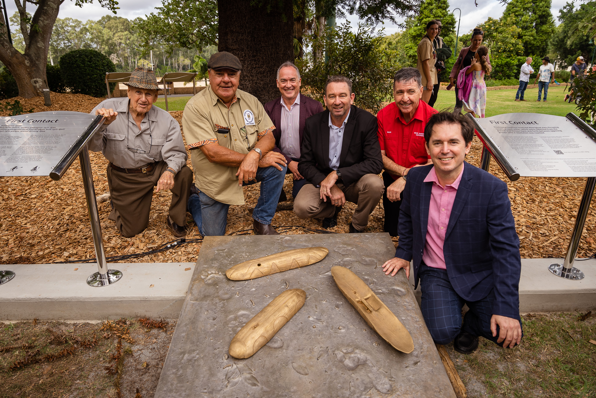 First Contact - Butchulla Warriors' Memorial was officially unveiled on Saturday 22 April, 2023 by Butchulla Elder Uncle Glen Miller, Fraser Coast Mayor George Seymour, Member for Hervey Bay Adrian Tantari, State Minister for Seniors and Disability Services and Minister for Aboriginal and Torres Strait Islander Partnerships Craig Crawford, and Member for Maryborough Bruce Saunders.