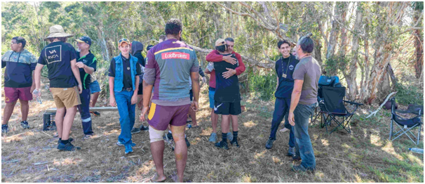 The SEWB Team was invited to attend the Rights of Passage Camp that was organised by the Butchulla(Badtjala) Men's Business Aboriginal Association. This was a pilot run of a contemporary Rights of passage for Boys to earn their right to become young men. This event was being held at Raven's Hill Maryborough National Park on sacred site for the Butchulla (Badtjala) People.